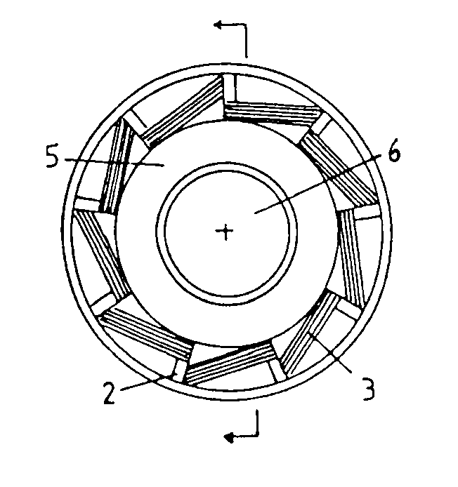 Abstract: A magnetic reluctance motor has a salient pole rotor 3 interacting with stator poles 1, 2 to form a machine operating on the magnetic reluctance principle. The machine incorporates a shaded-pole feature by introducing an angle of inclination between laminar structures forming the rotor and stator cores. This performs eddy-current screening restricting magnetic flux transit between poles as they separate. It allows the magnetic attraction between poles during the approach phase to drive the motor.